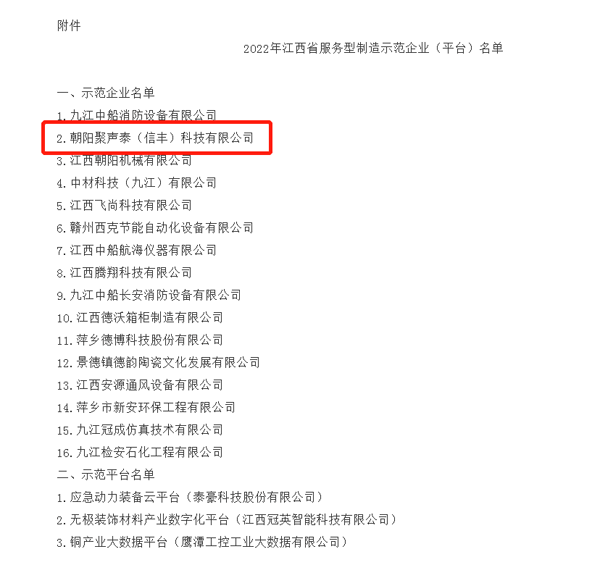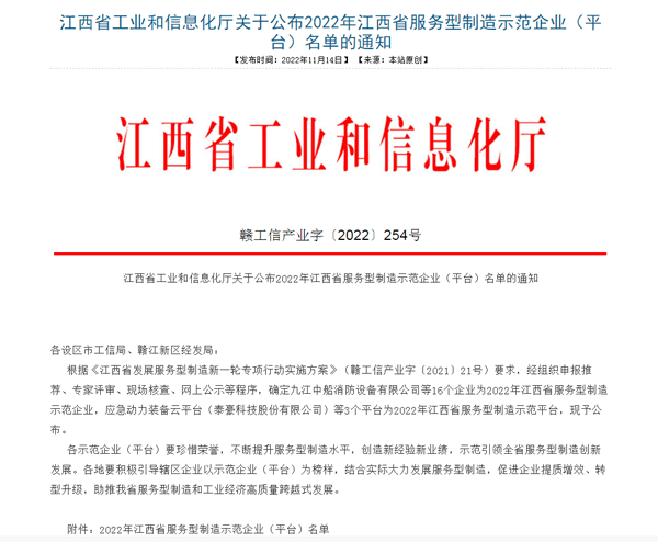 喜報(bào)!我司成功入選江西省服務(wù)型制造示范企業(yè)