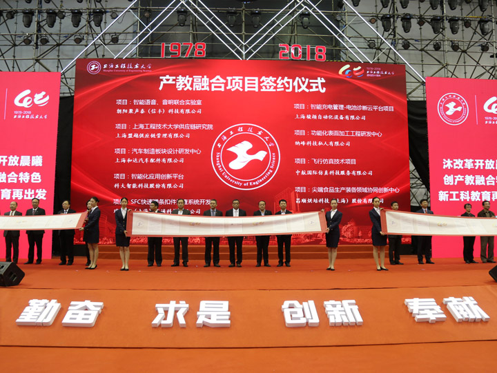以“產(chǎn)教融合國際合作,承四十載辦學(xué)傳統(tǒng),鑄新工科教育輝煌”為主題的上海工程技術(shù)大學(xué)建校四十周年紀(jì)念大會,10月27日,在松江校區(qū)舉行。嘉賓云集,高朋滿座,回眸沐改革開放晨曦,謳歌創(chuàng)產(chǎn)教融合特色,展望新工科教育再出發(fā)。