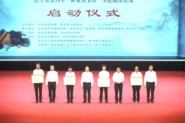 閱讀改變?nèi)松?,讀書點(diǎn)亮未來。4月23日,在第28個(gè)“世界讀書日”之際,“共建書香信豐 閱讀引領(lǐng)未來”信豐縣第28個(gè)“世界讀書日”全民閱讀活動(dòng)正式啟動(dòng)??h委書記袁炎講話并宣布活動(dòng)啟動(dòng)。他號召全縣上下,特別各級領(lǐng)導(dǎo)干部要帶頭擠出時(shí)間、靜下心來,多讀書、讀好書,讀經(jīng)典、讀范本,養(yǎng)浩然之氣、提境界格局,增強(qiáng)能力本領(lǐng),加快推進(jìn)“書香信豐”建設(shè),為建設(shè)社會(huì)主義現(xiàn)代化信豐提供強(qiáng)大智力和文化精神支撐。